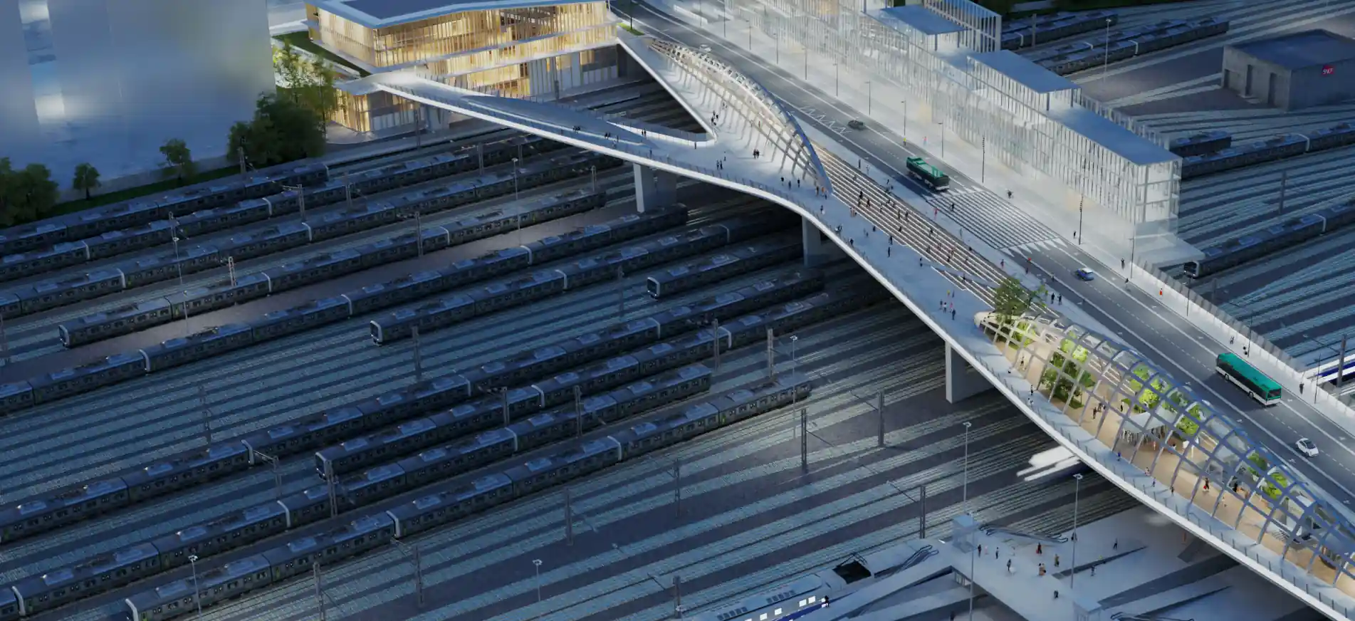 Nos équipes ont mis l’accent sur les spécifités du projet : un pont singulier, pierre angulaire du projet de développement urbain, qui concilie espaces de loisirs, de tourisme et de culture dans un quartier à vivre attractif et durable.